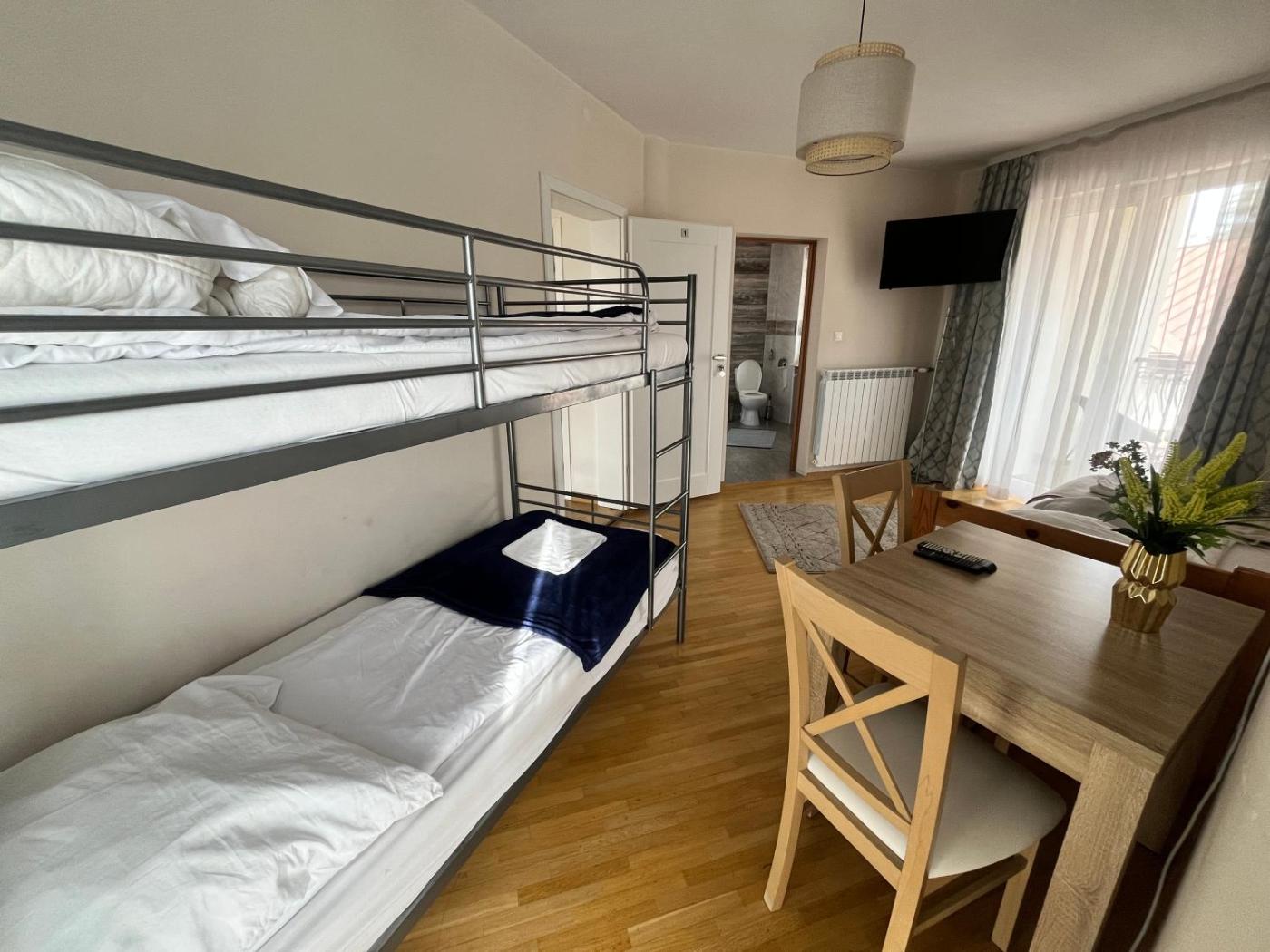 Pokój Trzyosobowy z prywatną łazienką. This triple room is comprised of a flat-screen TV with cable channels, a private bathroom as well as a terrace. The unit has 2 beds. Pokój Trzyosobowy - 3 osobowy. Powierzchnia pokoju ok.: 20 mkw.