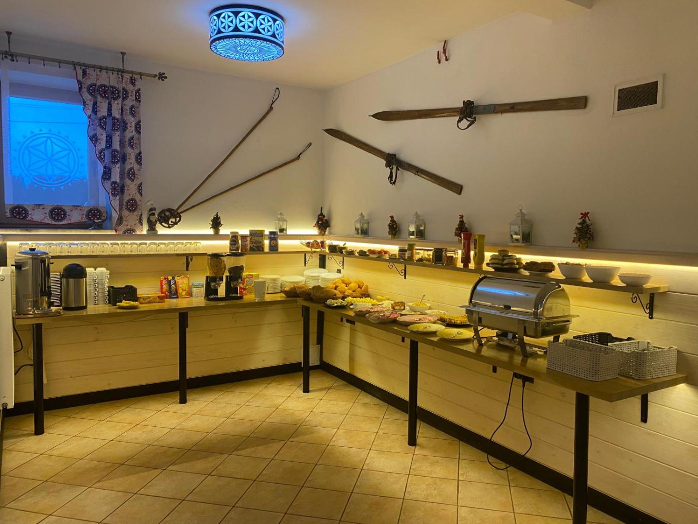 W niektórych opcjach zakwaterowania zapewniono także aneks kuchenny z lodówką, mikrofalówką i płytą kuchenną.